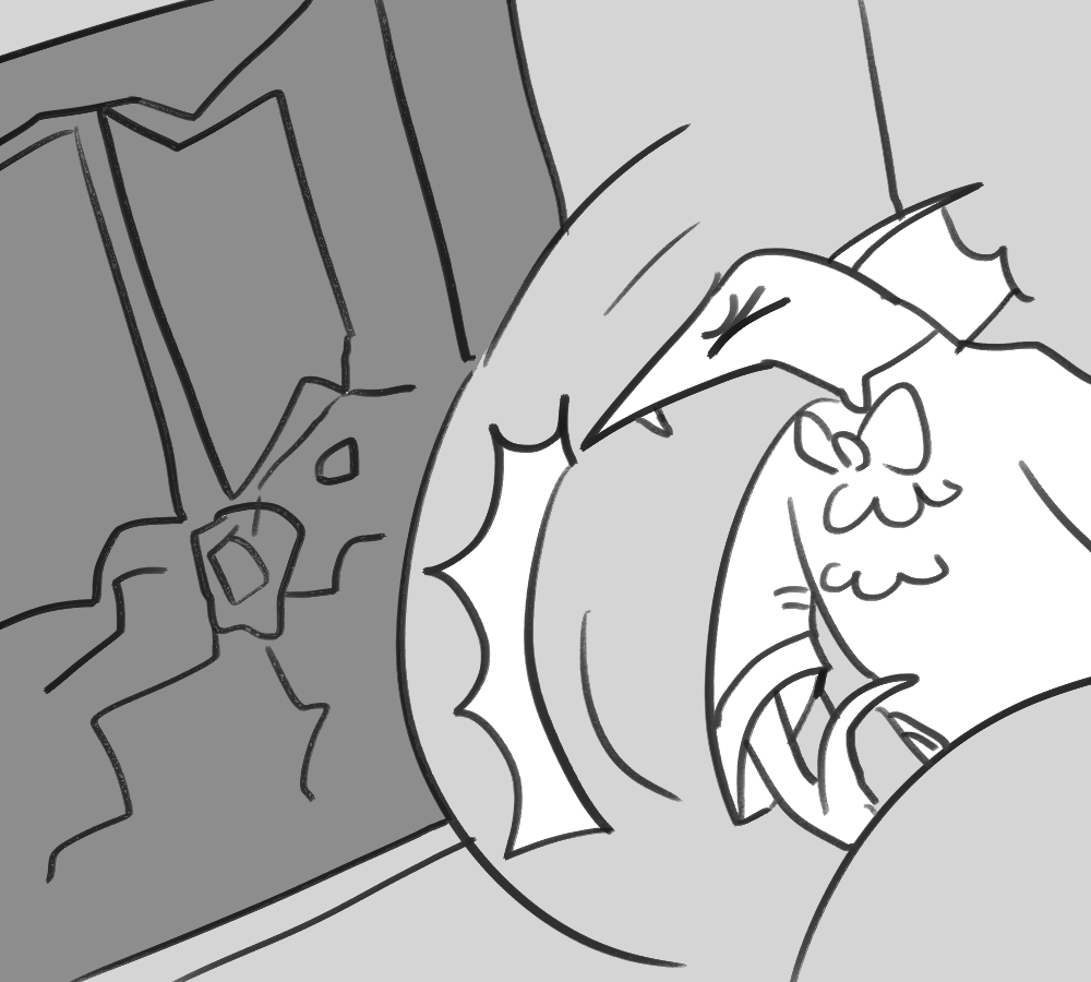 "I'll try to get one of its feet out, that way it’s less risky." Kibble says. She furrows her brow and the mental voice of Duck becomes audible.