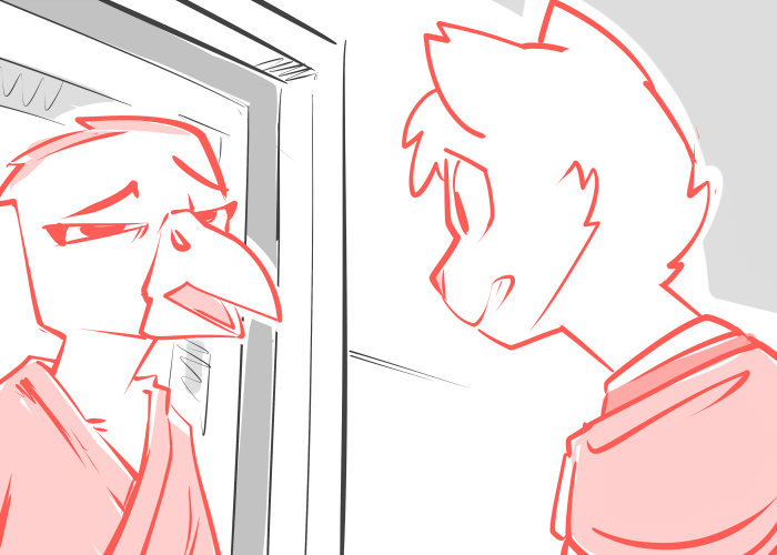 Nemo hangs on tight, his arms locked around Clio. Trying to hold back the tide, he gasps out a frantic, “I- I’m gonna!”