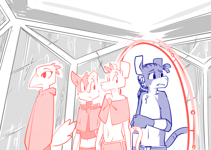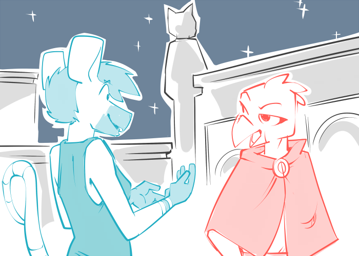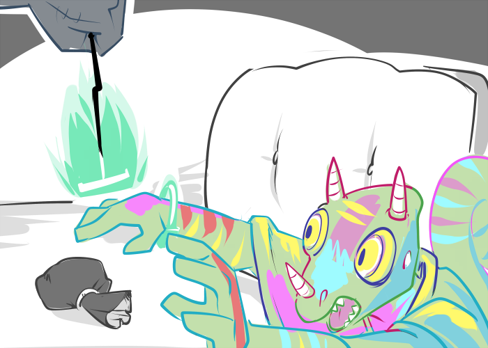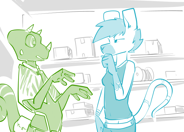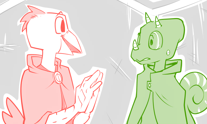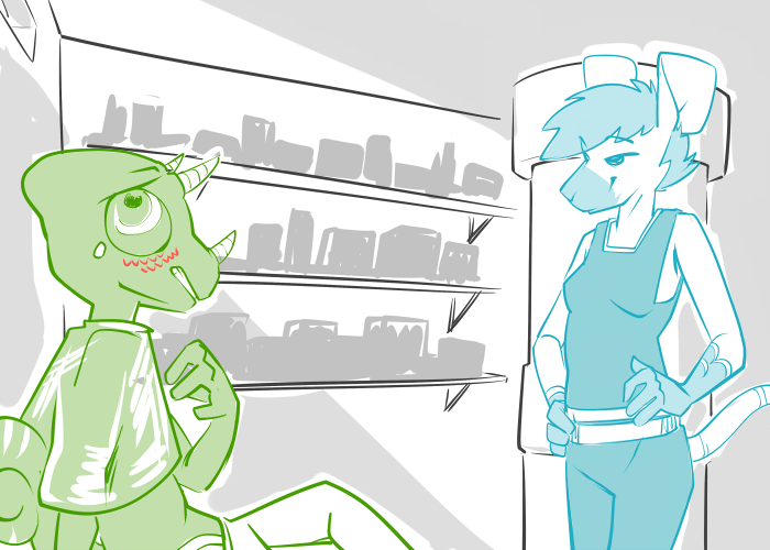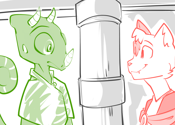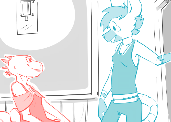 The lizard clings to her like a life preserver adrift at sea, his breath hot against her fur as he’s rocked from behind. His body emptied, an intense over stimulation drums through his nerves, leaving him only capable of croaking and hanging on.
