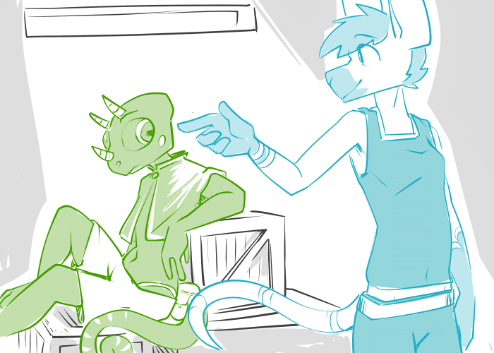 The lizard nods weakly, trying to keep his eyes pointed in the same direction. Nemo’s strange fingers clutch at sides, giving him the purchase to slam her insides with both dicks. His ass, spread open by Gabe’s jackhammer thrusts, tightens around the shaft battering his sensitive prostate. His tail twitches and shivers, being driven in and out of Gabe by the movement of three bodies.