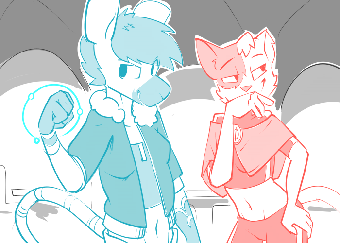 “Yah-yah-yah! Do it! Ooohh, fuck!” Clio squeals, pushing back into the hilt, her body milking the chameleon for every drop. Nemo’s fingers shiver across the cat’s clitoris and her fur stands on end, yowling as she cums and clenches around him.