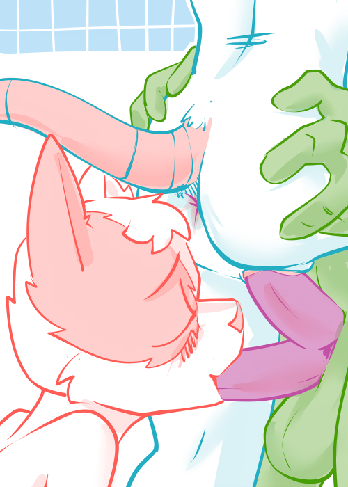 Nemo’s eyes go wide as an explosion blossoms inside of him: sticky, wet goodness spilling and spurting, cooling his sensitive nerves and leaking around the edges of his tail-hole. A long, warbling moan is dragged out of his throat, embarrassing and alien as it echoes against the tiles.