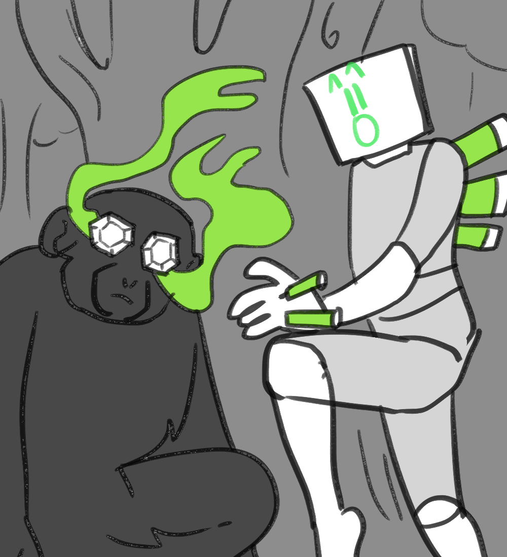 “Annoying fuckers.” Maddie mutters. “Yeah, that’s Carbon and Silicon, I met them in person on that last mission. Silicon kept trying to get me to leave when I was on the third level, said I was being a downer after my friends died, but I smashed his robots whenever they got close. Carbon tried to steal the bodies but he wasn’t obnoxious about it.”