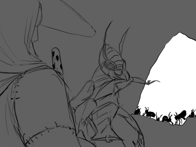 Im hired to kill the bugs in here. I got a gun 'n bullets. There's a town behind me.
