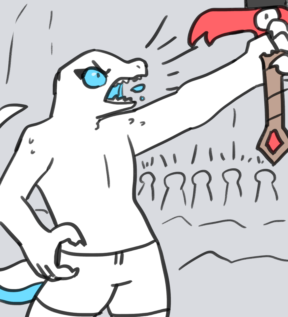 “Oh my! How could this be? My own intern turning against me?” Silicon says dramatically. “What a big sword you have, Chuck, I sure hope you don’t kill me with it!”