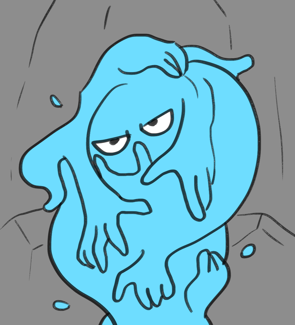 The top heavy shrimp is working furiously at her desk when the robot enters the room. She does not notice its approach until it speaks.