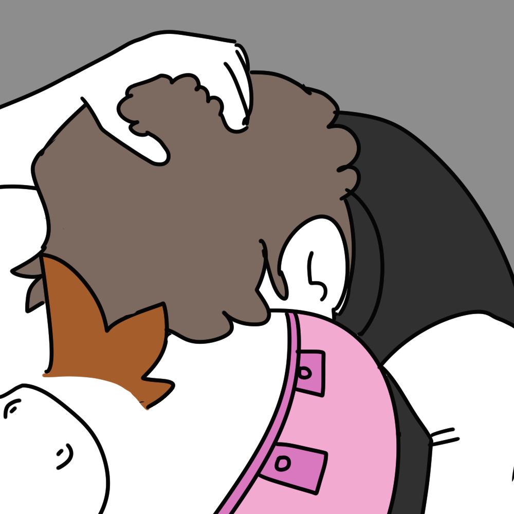 Also, please ask why she has red gropey hands on her boobs, please, we're running out of opportunities to bring it up.