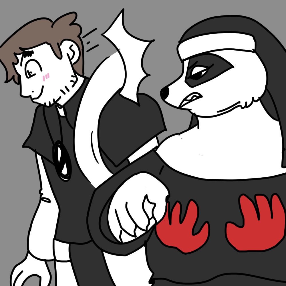 Also, please ask why she has red gropey hands on her boobs, please, we're running out of opportunities to bring it up.
