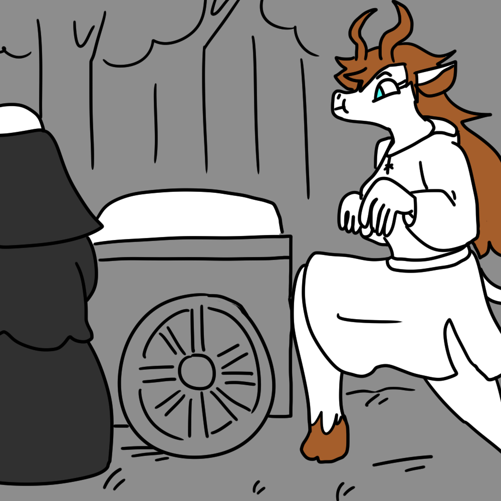 Like the sheep woman at journey's start who bought a permit to go out in her wool. She bought the permit! She genuinely believed she was living by the rules set by the church, and Ginerva was going to fine or arrest her! If anyone should have gotten in trouble, shouldn't it have been whoever was selling such a document? And if the permit was allowed, and someone in your religion had granted this permission, couldn't you have approved her permit for the district? If literally nothing else, if she needed to be dressed at that very moment and you had nothing to offer, could you not have escorted her to a tailor?