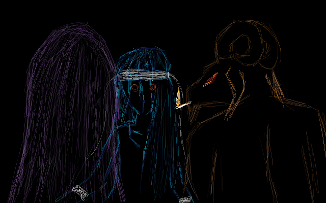The other is holding something else that makes her think of sparks. She remembers sparks. She remembers being in the chair and then there were sparks. There was a hurt in her head and they asked questions.