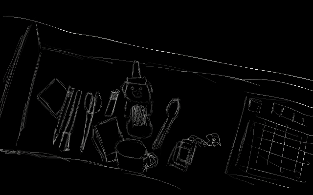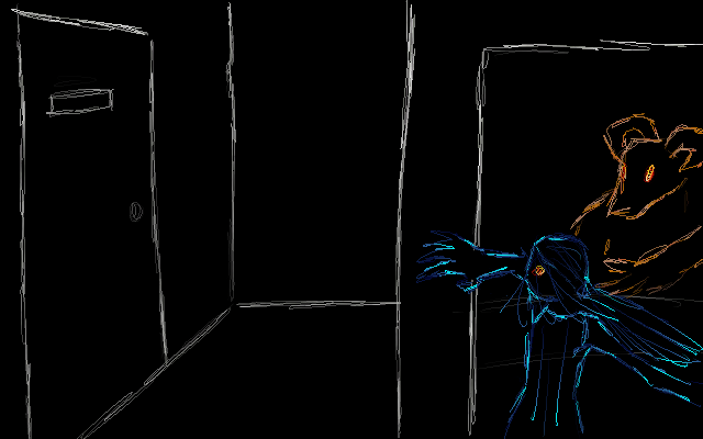 The hall is where she is not supposed to be. She has been in the hall before. The Things take her. They take her places through the hall. To places. Sometimes the places are green. Sometimes they are pain. Sometimes the places hurt her.