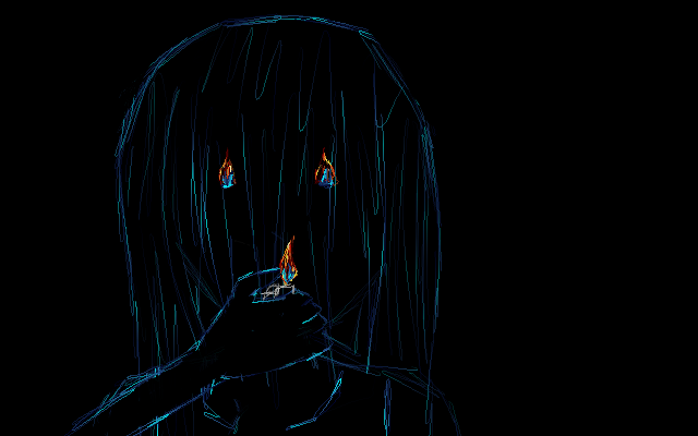 She points. "FIRE! It is burning! It dances with her! Inside!"