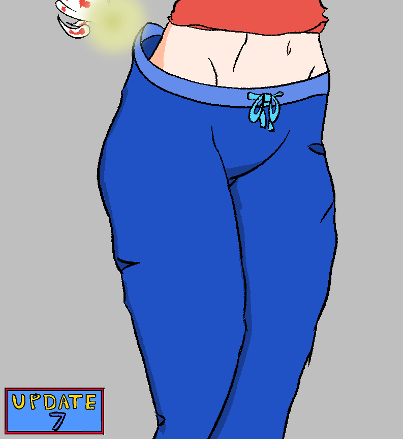 Rico quickly flies back to the house to grab the phone and a spare one piece swimsuit to try and help calm Sarah down by giving her something to wear while she waits for her ride. however someone see's rico returning to the van and heads over and calls out if they need any help moving trying to be a good Samaritan. This causes Sarah to panic and grab the swimsuit before rico can let go and in Sarah's haste to make herself decent before someone can see her she accidentally traps rico inside of the one piece before quickly putting it on before realizing what she's done trapping rico between the inside of the swimsuit and against her bare self. Before she can let rico out the individual comes around the corner and greats Sarah and ask if she needs any help moving anything. Then ask why Sarah is wearing a swimsuit, then when sarah says she's just waiting for someone to pick her up after a rough day the person decides to stay and make small talk with her until her ride comes as they sense sarah had a rough day and hope having someone to talk to will help her destress. Rico is still trapped inside the tight one piece swimsuit wedged up in Sarah's butt and is afraid to try and get out while someone is watching because of embarrassment just as Sarah is afraid to bring any attention to the fairy inside her swimwear while someone is nearby. Rico is then trapped there until Serah's ride finally comes to pick her up and the "helpful" individual finally leaves hoping that they helped take some of the stress out of serah's day.