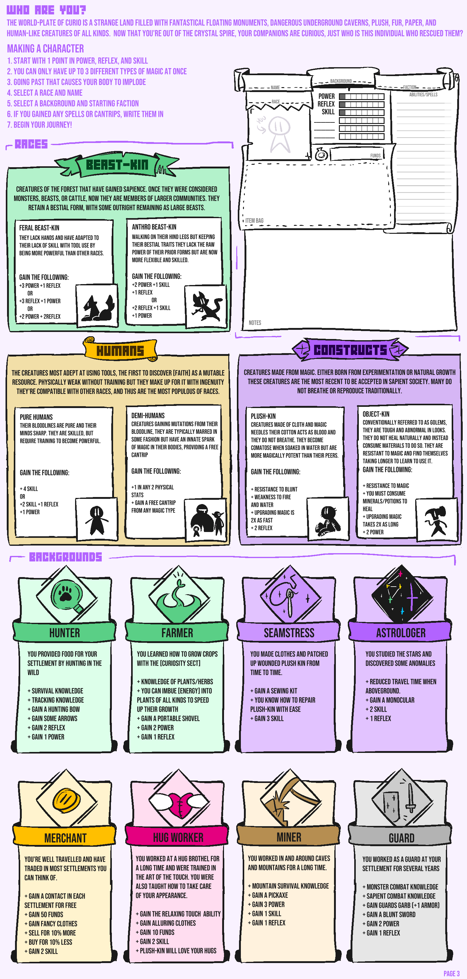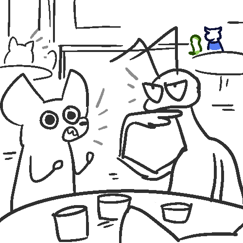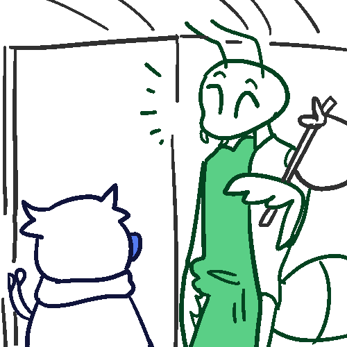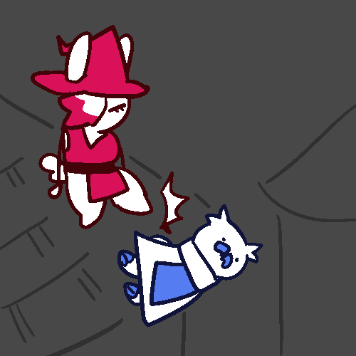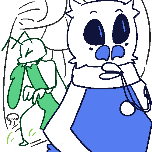 Apparently, while you and your PRAYING MANTIS friend were patrolling outside the village for anything out of the ordinary, while also finding opportunities to take breaks to slack off, MANTIS friend heard some noises you couldn't hear, found some unfamiliar footprints that you could barely see, and an unnatural ammount of leaves on the floor, despite it being summer. your PRAYING MANTIS buddy has VERY GOOD PERCEPTION and was able to alert you to what was happening. So thanks to his perception, he lead you to a a gang of bandits hiding out above the trees, and thanks to your SILENT STEP, you both were able to sneak over and see who was in the trees, and listen in. Apparently, the thieving bandits were lead by a cloaked SKUNK, and you heard their plans on how they were going to raid the village with the intention of stealing everything that wasn't nailed down in people's home, and other treasures the village had, and maybe kidnap some kins. Boy, these bandits were sneaky and hard to see. one would have trouble spotting them in the darkness. But thankfully, with your PRAYING MANTIS buddy's perception, and your sneakiness, you both were able to spot the incoming danger before it was too late.
