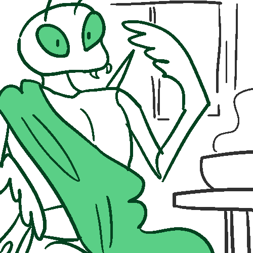 So one night, you were assigned the NIGHT SHIFT to protect your little village within THE FOREST OF THE WOODKIN, along with your FERAL PRAYING MANTIS friend who was also a guard. The mantis didn't require weapons as his arms could crush skulls, and impressively, even sturdy or sharp weapons like swords as if they were nothing! You volunteered to take the position for that night because you really wanted to hang out with your best bud that night as you never really had the chance to ever talk to him ever since you married to your deceased sweetheart and spent most your time with her (bless her soul) while the rest of the times were spent guarding the town. Plus, nothing really happens at night, so really, it was a chance to just goof off and share stories, have some debates, sing songs, maybe sneak a drink.