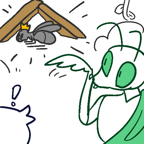So what you and your praying mantis did was after listening into their plans, decided to set a bunch of traps all throughout town with your WEBS based off of the locations they were going to attack. web net in the middle of someone's chimney, a pitfall in front of your village's treasure, stuff like that. The mantis even used his arms to help make more complicated traps with your webs using wood and other materials