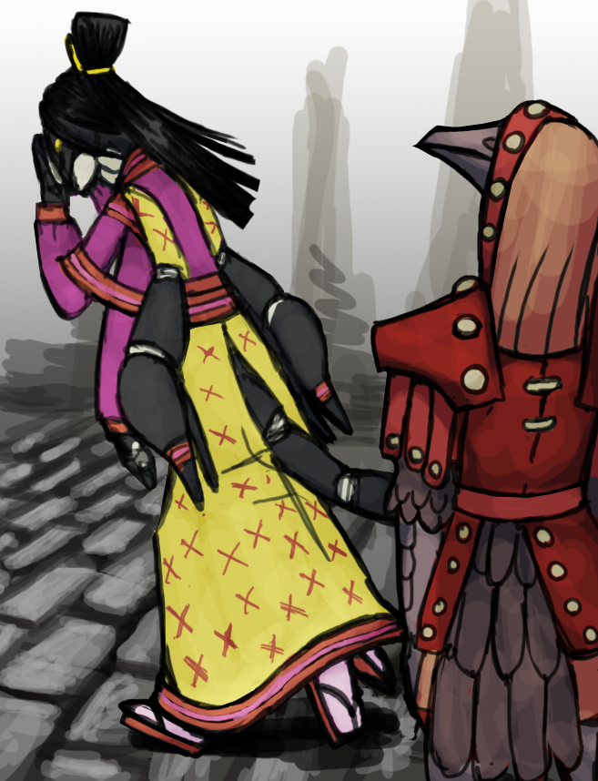 Kalez relents 'Very well. I'm not condemning you. Loyalty is nothing more than a promise waiting to be broken, only a fool relies on it. given how you live your life I thought you too would understand this.' her tone drifts to pity. you think Eeyfel is loyal? she's just as treacherous as you are, did I ever tell you how many of her sibling she throttled with her bare hands to get the position she has? we're all drenched in sin here. The "loyalty" you think that Eeyfel posses is bought through fear, fear of the power I have over her.