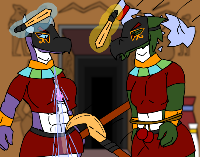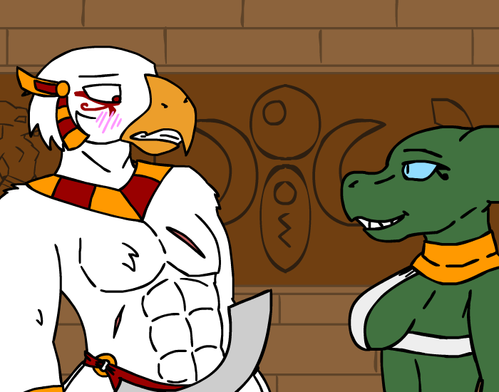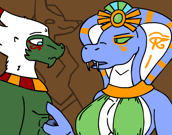 ”So... Princess Shelli… about the others being your mates?” Tefnut asks slightly awkwardly before quickly adding, ”May I have to honor to become your mate as well? I’d love to become the mate of a powerful and beautiful princess like yourself.” She puts one of her hands on your shoulder while resting the other one on her hips, trying to flex her muscles discreetly to show off her well trained body. If you were into muscular woman, you’re sure she would be quite the catch. ”And I promise you that our first breeding session will be a long and pleasurable one, where this fat cock of mine will make you scream for whatever god you worship over and over again… um… ” she stops bragging about her sexual prowess when she notices that you’re not at all impressed, ”Err… or I’ll just impregnate you real fast if that’s what you want? I can do that too?”
