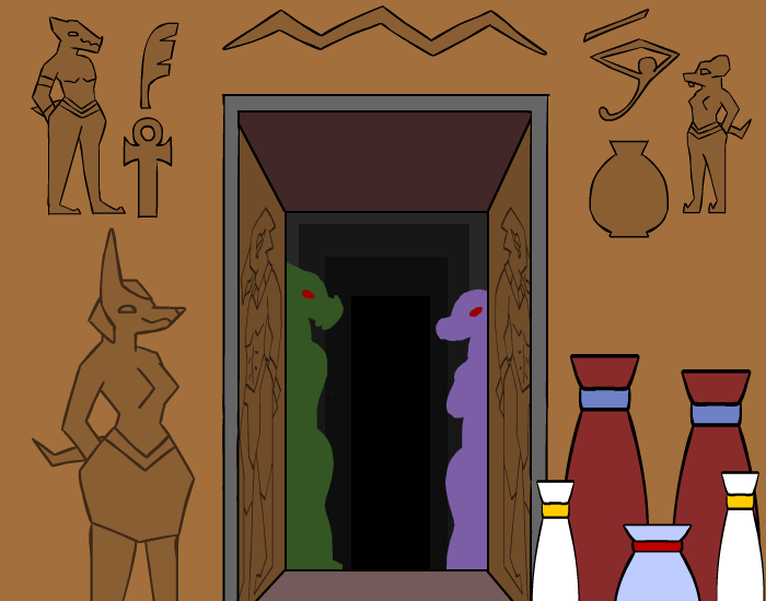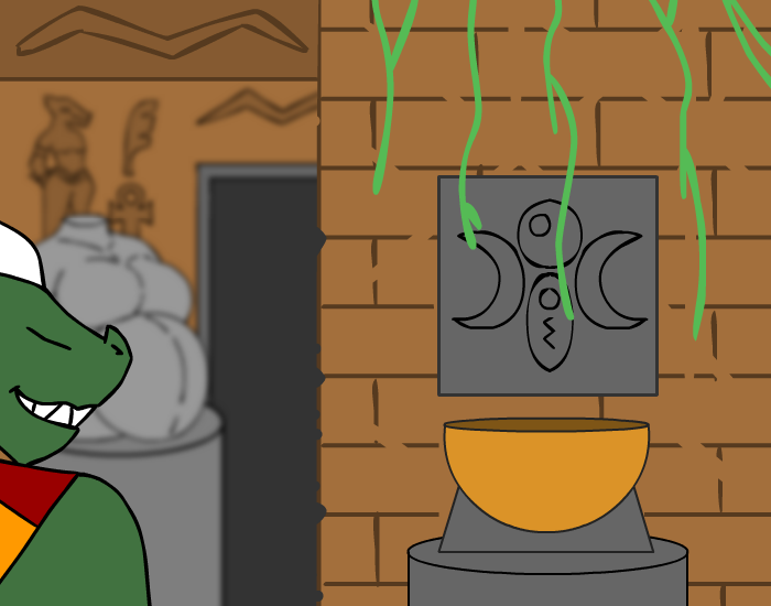 So, if you wish to continue to the library, you first need to clear a few things up. First off, clothes… what will you wear? Do you try one of those clothing spells or do you let Planter make you some clothes from leaves? Second, how do you deal Sabah? Do make her tiny? Shove her somewhere the sun doesn’t shine? Oh, and you did take some time to memorize that enlarge/reduce spell, so you can now cast it at will. Finally, there’s… well, Tefnut here… she’s the only one who isn’t your mate right now, is she? Do you want her as a mate? Sabah and Planter is already a handful after all…