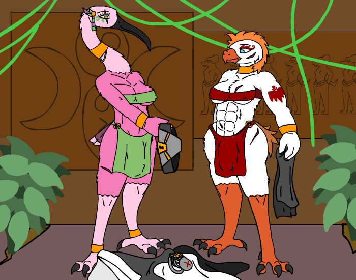 Scrubbing your belly, the muscular bird speaks out, ”Hey, why would I ever backstab you? I got exactly what I wanted, right?” which is immediately followed by Sabah, ”And I already said I only did it to get even, remember? Unless you eat me again we’ll be fine.” Felling a bit evil, you tease her, ”Hmm… I don’t know… maybe I should shrink you just to be safe…” though the pink slime clearly doesn’t take it well, ”H-hey, wait a moment! Before you do that… um… what do I need to do for you to trust me?” You scoff to this, knowing full well that lost trust isn’t that easy to regain, but you guess you’ll can still find her useful at least, ”Let’s start by doing what you’re told? How about that?” She gives off a small huff and looks a bit annoyed, ”Hmfp… fine… so you want me to scrub you or…?” she says as she gesture towards your massive chest, but you have a better idea. ”I want you to be my book stand while I bathe.” you instruct her, which slightly confuses her, ”…you want me to hold the book?” Giving her an evil smile, you correct her, ”You heard me. I need a book stand, not someone that holds a book. You’re slime, so just change your shape a bit.” Reluctantly, the pink slimes shuffles over towards the tome, ”*Sigh* yeah, sure, whatever…”