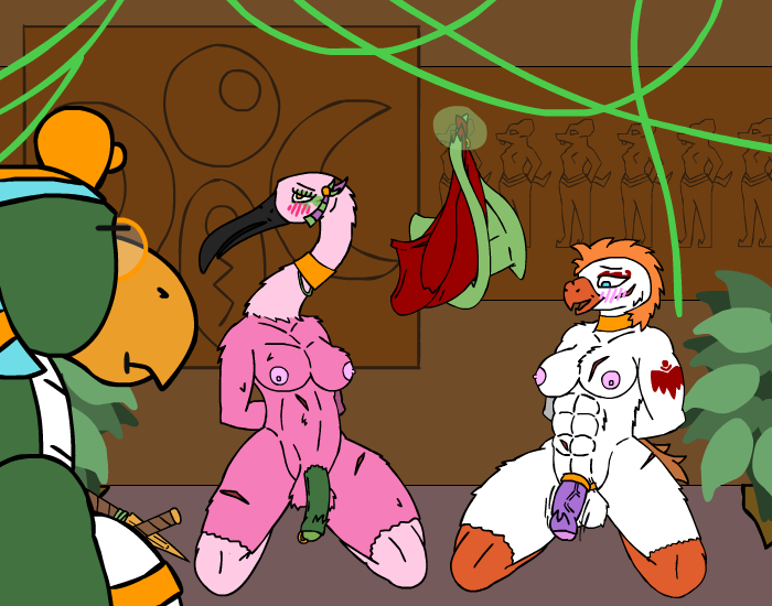 Planter of Seeds shows the three of you their secret little water hole, hidden deep within the underbrush far from the entrance to this place. A waterfall pours down from a small hole in the celling, creating a small dam of water in the middle of this jungle. Eager to get this gunk of you, you dive into the water as soon as you get the chance, leaving your new servants behind at the edge of the pool, though it doesn’t take long for them to join you as well. Knowing their place, you don’t even have to utter a command before they start scrubbing their princess down, cleaning you thoroughly as they explore every inch of your body with their hands and vines. At least, Planter of Seeds and Tefnut does… Sabah is keeping her distance a bit.