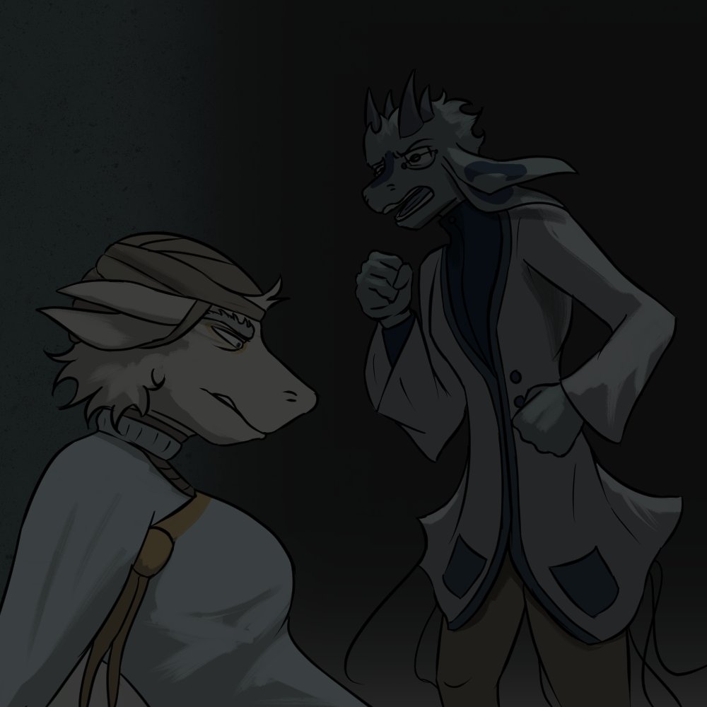 Mention the only real reason you have to care about the past of this world is as something to be inspired by - as stories. But you don't have too many of those outside of your lessons, as most people don't seem too eager to chat. You've been told you're an ugly reminder of something. And maybe you haven't been trying too hard to connect with your origins, either. You prefer to look forward - what use is there in dwelling on a world soon to be gone? But today...