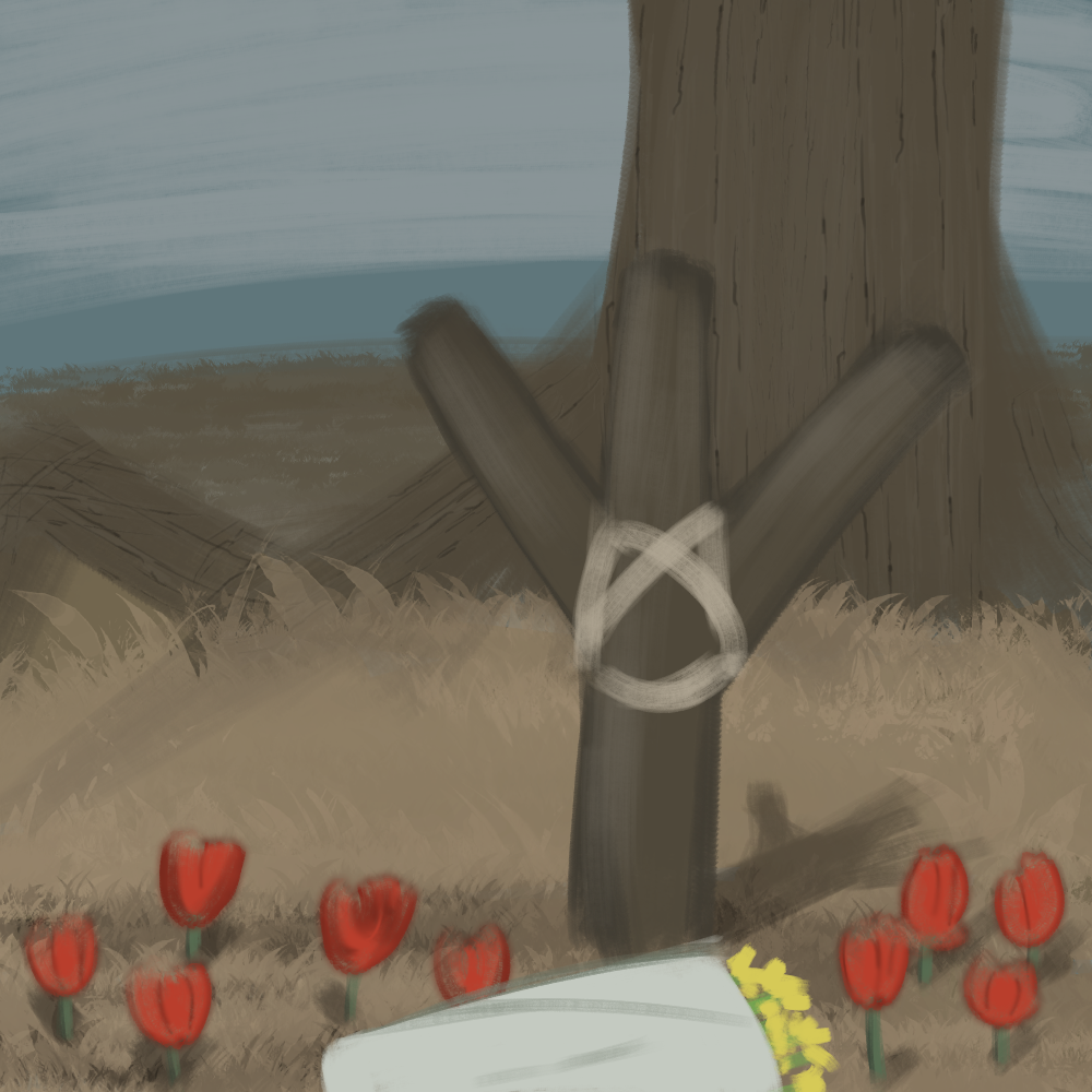 Another thing that is true: this seems like the same date spot as we saw, but there was no tree at the time. Either, as you speculated, that tree grew technologically fast, or it's actually a fake hiding something, or... did someone's para- or pseudosignia do it? Is this an example of a location-based Pseudosignia? Maybe it's a hint at Mnemosyne's Parasignia. If her pseudosignia can make whatever she wants grow... that could explain the tree and the still-alive flowers. This was her dating spot, so may be where she first formed her Parasignia.