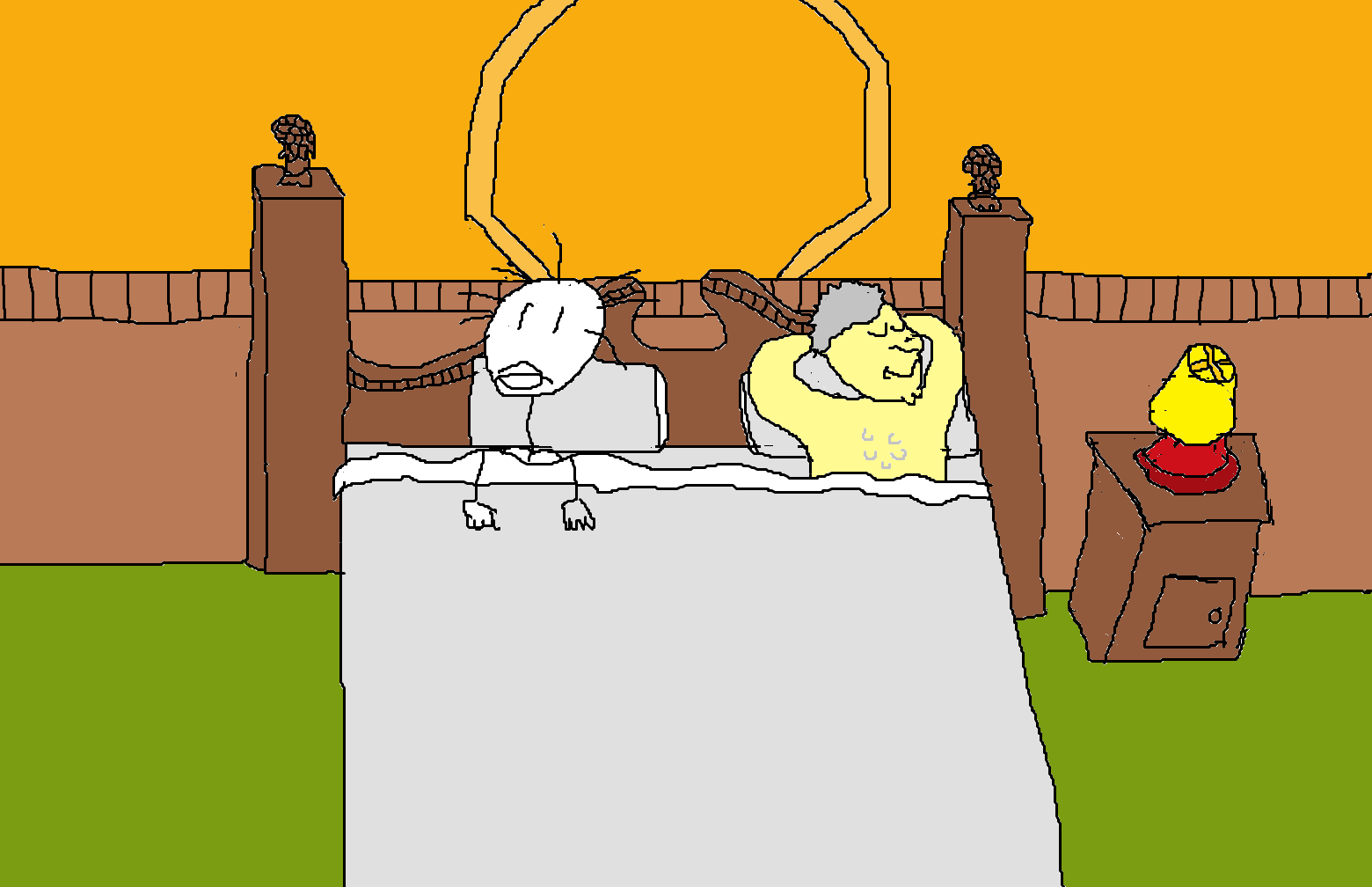 As the only two entities you've encountered thus far who do not have sticks for bodies, the only logical plea to make is that they get naked.