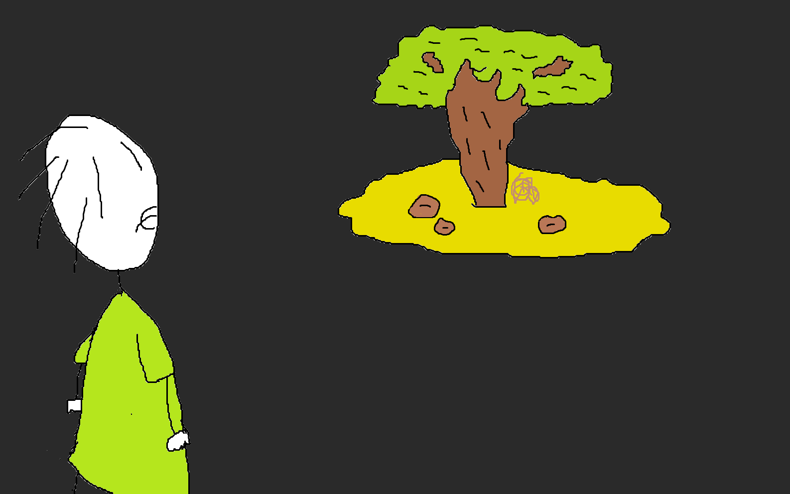 "Welcome, Strfindent. You stand before the sacre Rickety-Ass Desert Tree of Life.", a faint and strangely familiar voice echoes from somewhere nearby.