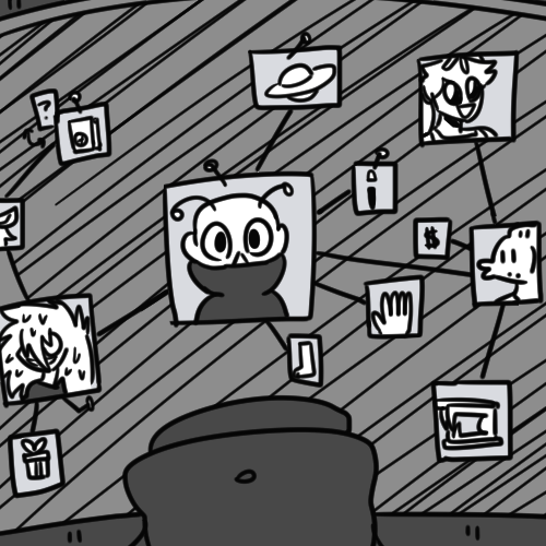 Unlike the other side, where the connections involve making massive leaps that only Jhonen really understands, this side was different. The connections were more... Coherent? Like, I can tell there’s a point to it, even if I’d need to really read it to understand what that point is.