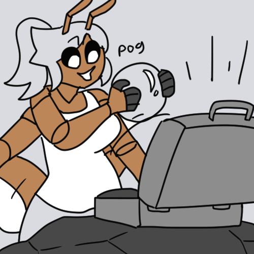 Ask Jaina if she's alright. What happened? Did she get thrown about too much? Hmm, how do ants breathe again? Wait you can see her breathing so it's not pure exoskeletal respiration... does she have an infection? A fever?
