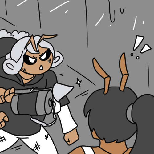 “Who’s there?” Jaina springs into action, waving her spear around.