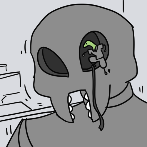 <Guys, the skeleton just talked…> Pent's looking straight up.