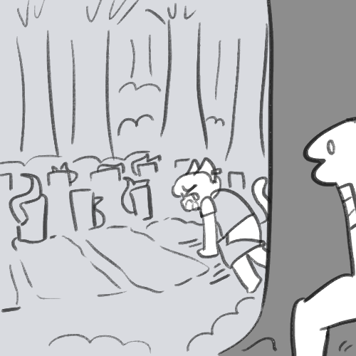 I think if we are to approach, we should probably take a flower that is growing in the forest, and bring it over to Dr. Trey's grave to pay our respects like the other kin we see do. She might appreciate the gesture. Otherwise, probably just leave her alone.