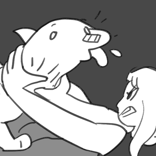 Augh, it’s Andrea! You prepare your thick skull for more rib destruction in case Andrea tries to put a hand on you. You’re very fed up with all the KIN who think you’re some kind of TOY. Beaky is the only exception.
