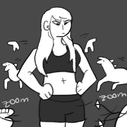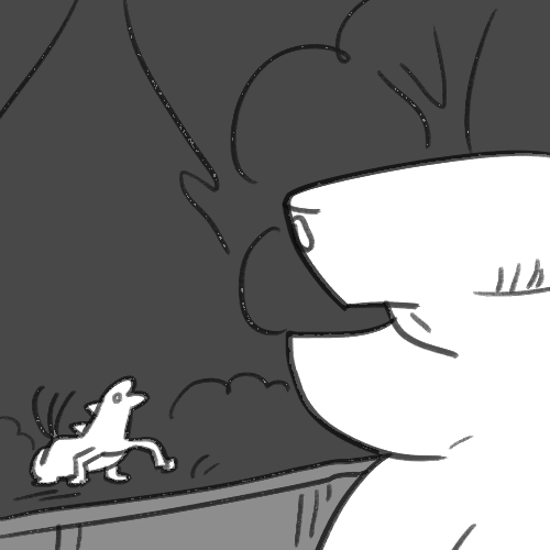 It’s the easiest choice of your LIFE. You enter the room and lay yourself at RIDER’s feet below the edge of the bed. She reaches down to stroke your head, and you tune out the sounds of the campy horror movie as you sink into a blissful doze. Maybe one day, once the WAR is over, your RIDER can get a nice house with a fur rug in front of the fireplace where you can sleep and grow old. A big yard to play fetch in. A warm, soft bed to rest your weary bones.