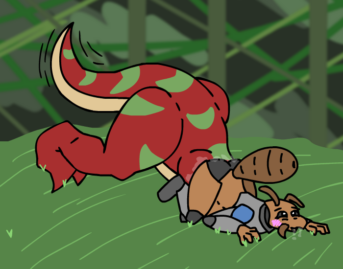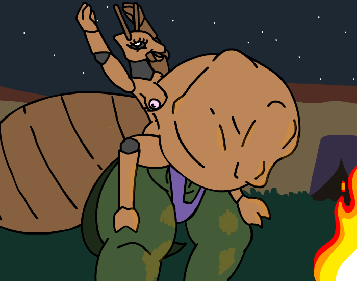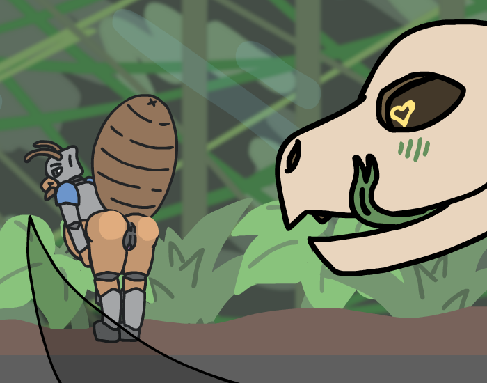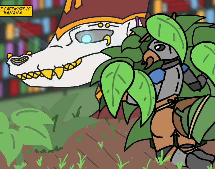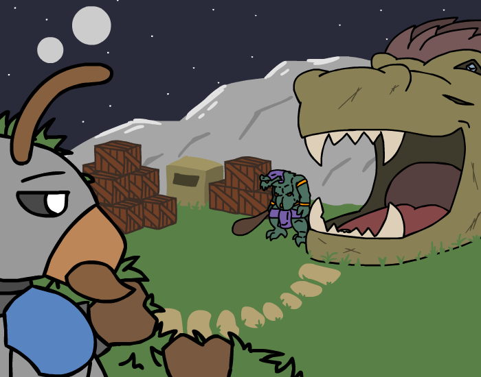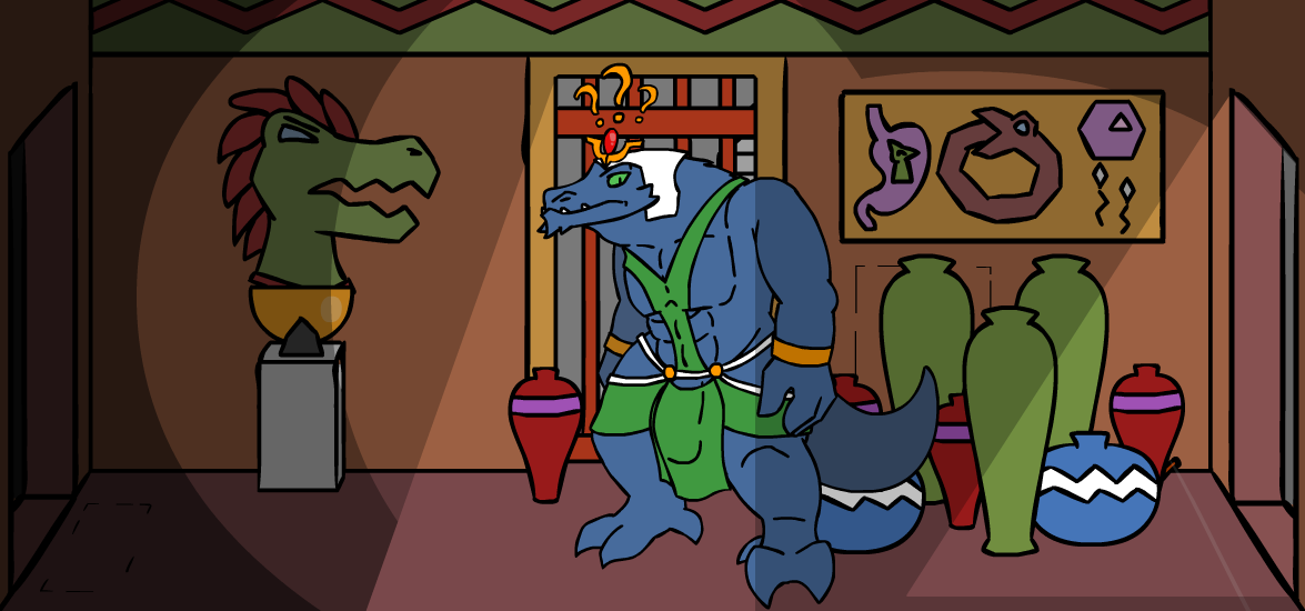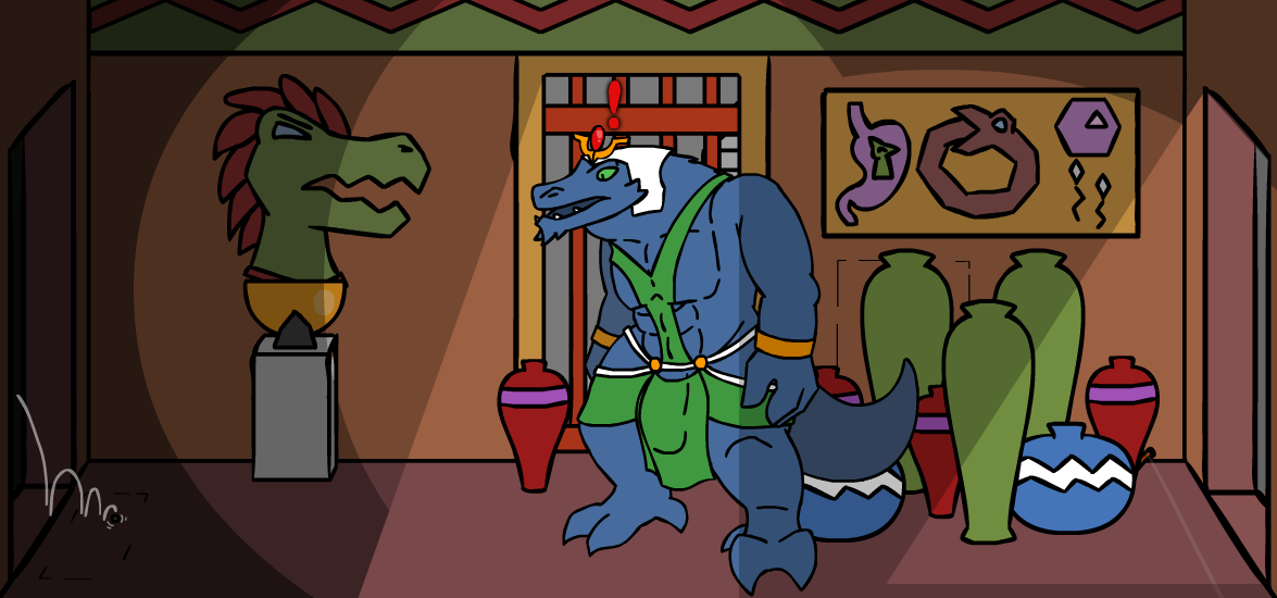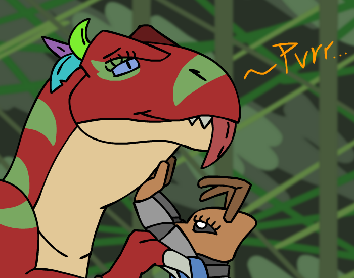”Look! Treasure!” you say as you bounce forward, but Herod grabs your shoulder and pull you back, before gesturing towards the gator and whispering, ”And a sleeping Kroah-dil.” Oh, right, you’ll need to ask the nice gator man if you can have his treasure first, of course! So let’s get to it, ”Let’s wake him up and say hi!” But for some reason, the Zalbian next to you gives you that look he usually have when he thinks you're completely daft, before telling you, ”…no, let’s not do that.” You cock your head to the side and ask him, ”Why not?” which just makes him give you that look once again, ”Um… because it’s a bad idea? And he might be grumpy?” Oh, you didn’t think about that! Of course he wouldn’t give you any treasure if you woke him up from his nice nap, duh! ”Oh, right… no one likes a grumpy gator after all *giggle*” you tell Herod as you elbow his ribs, but he doesn’t answer. ”*Sigh*”