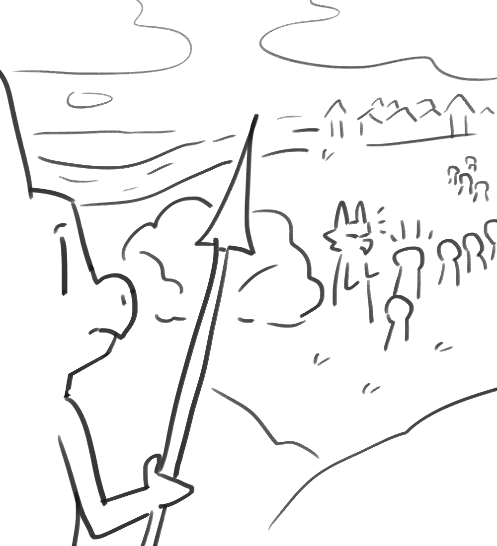 You pack a lunch and trot out of the cave, spear in hand. Weasel will wonder where you’ve gone, but as long as you’re back in the evening she won’t worry that you’ve gotten lost or hurt. You go around the mountain to the south side facing the human village. The dragon hauled her horde out to one of the flat, grassy fields by the river, about where Bark the thief used to live. Most of the scrap and old armor is gone, leaving a pile of junk that would fit comfortably in your home cave.
