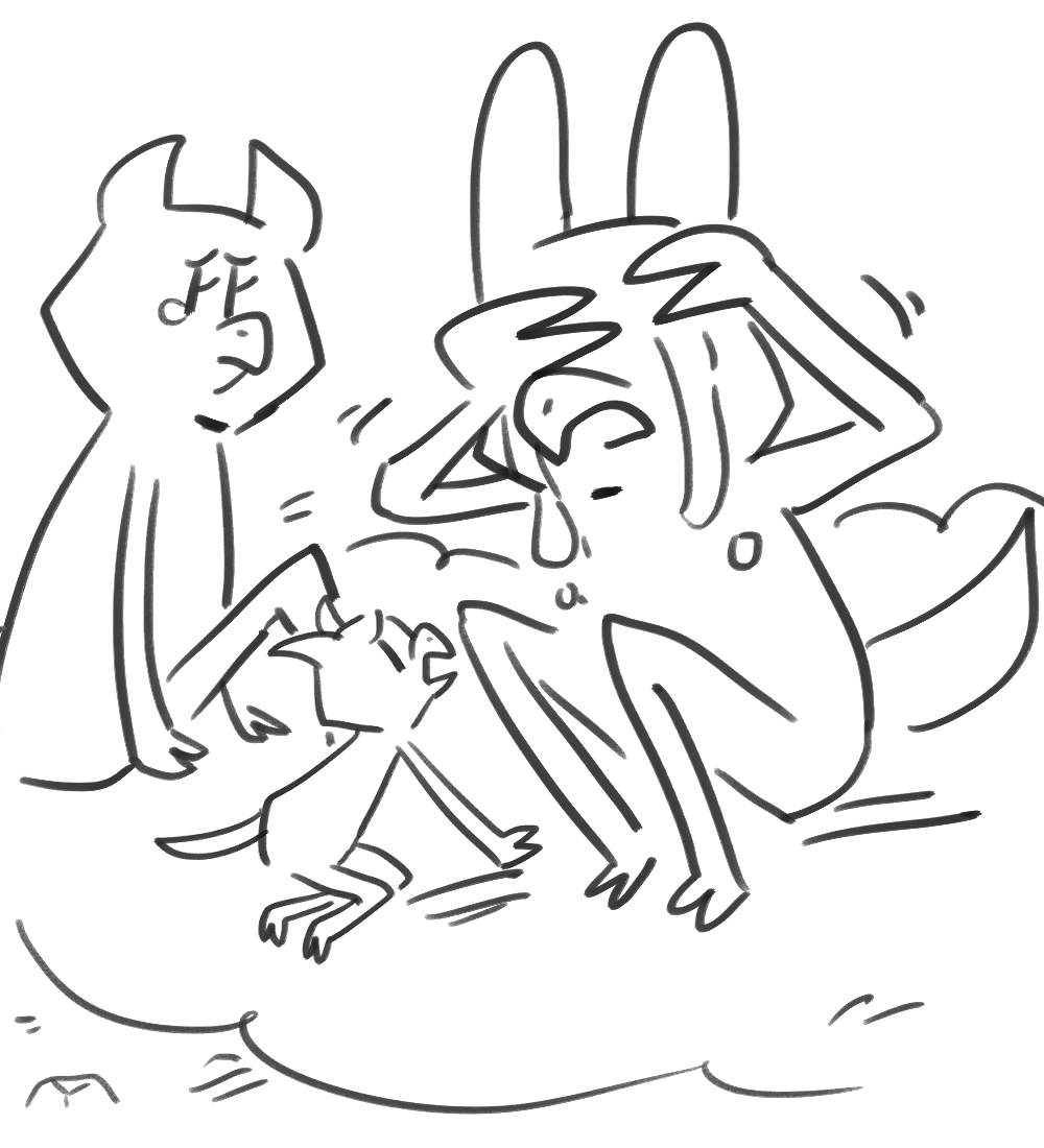 Weasel finds you and holds your shaking shoulders. Worm even returns from where she was hiding after gorging herself and peeps in surprise at the sight of her father so upset.