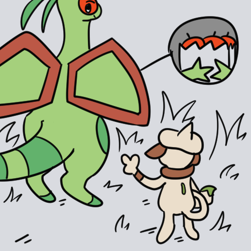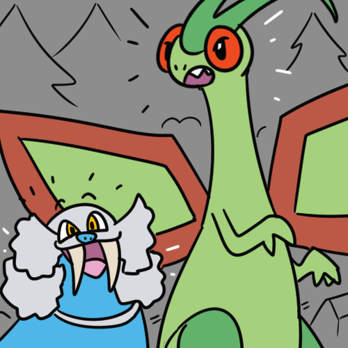 No wonder Groudon is having trouble sleeping, Spore barely keeps him down for more than a few seconds. You swoop down to pick up Smeargle’s prone body and clutch her to your chest a safe distance away.