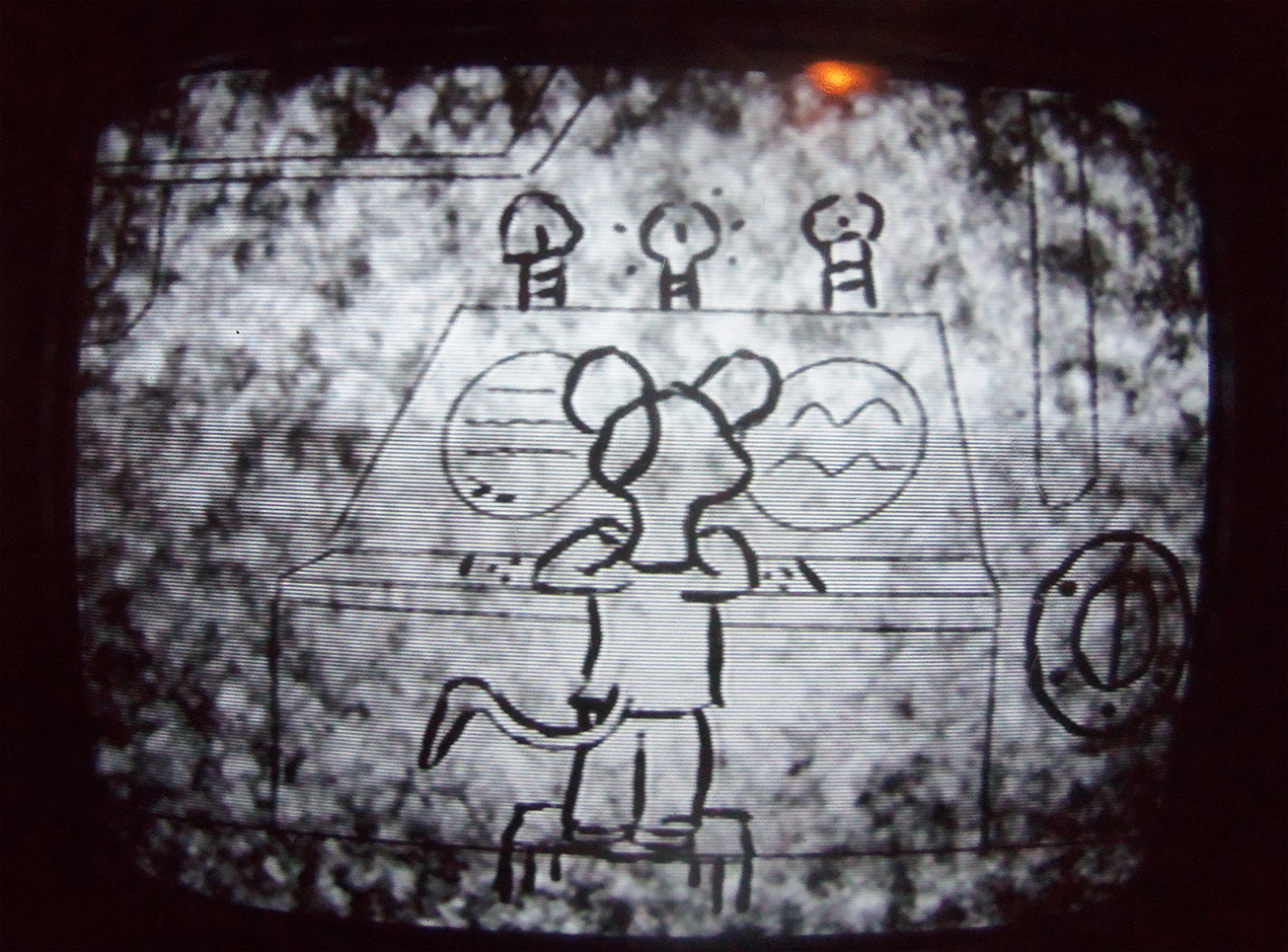 Through the camera, you can hear Davey muttering ideas to himself, though its difficult to tell what. You keep quiet to avoid distracting him.