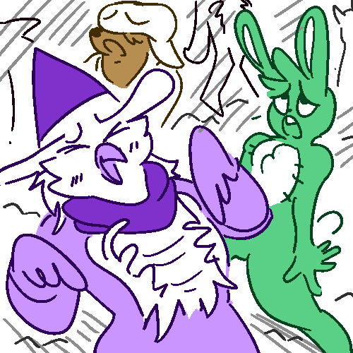 So she went out of her way to fuck with a triangle-headed cop and some bitchy prosecutor that had given her grief for the past month. She did this by god-mothering some HIGHLY-inappropriate attire onto them, as if to say "NOW who's being indecent in the wrong part of town?" With the sugar running through her system, they had no chance of capturing her, so she hung around to taunt them. Turns out that the downside of a massive sugar rush is a pretty bad sugar crash.