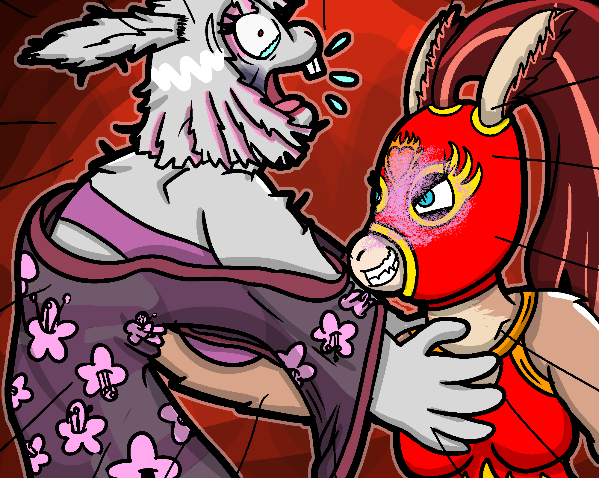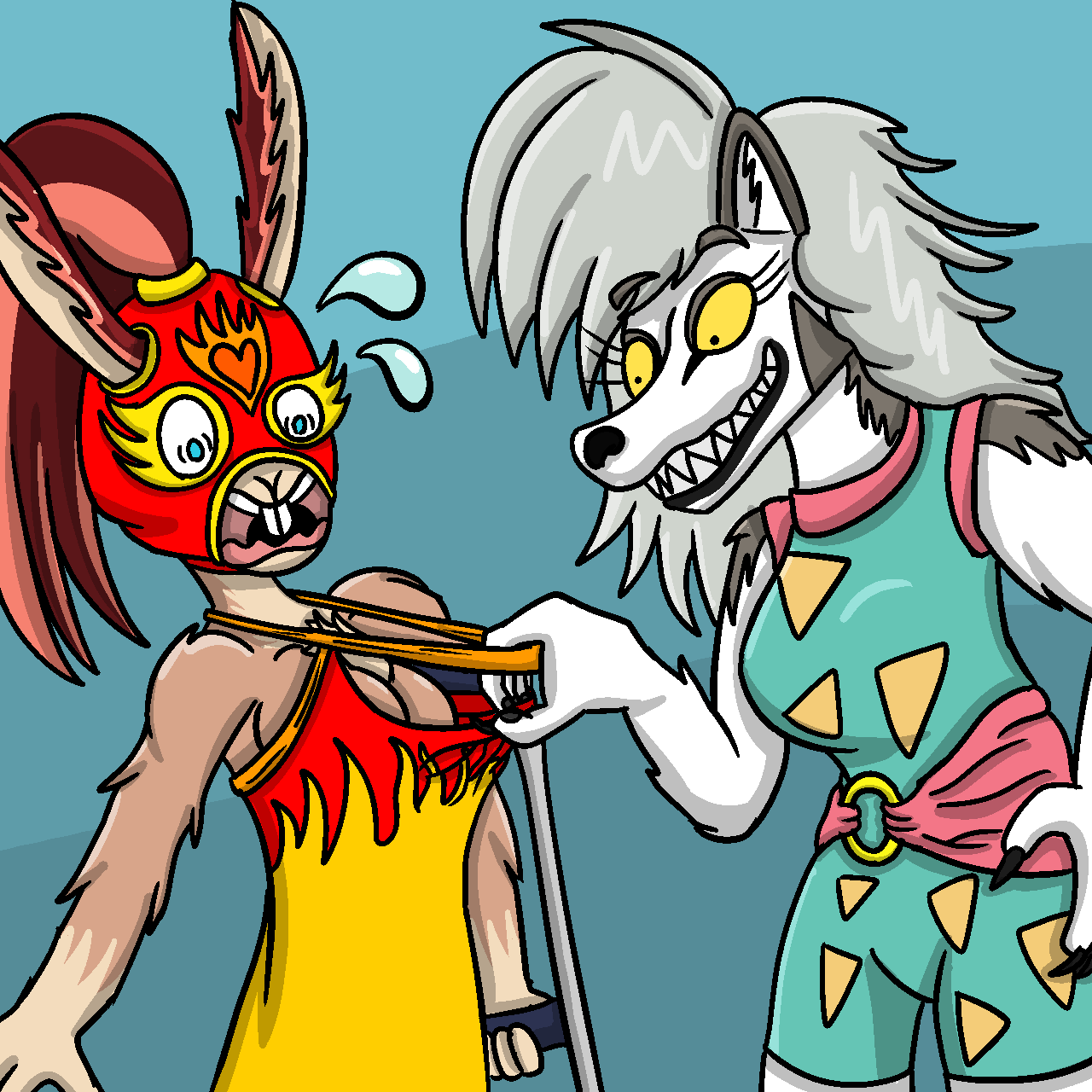 In fact, the only thing that feels good right now is the memory of getting to deliver swift justice straight into Tsuki’s midsection. After what the WAN did to Marv? She’s lucky I didn’t do worse! I’m a spring-loaded, high-flying Luchadora and everyone should be afraid of getting on my bad side. Don’t mess with me or mis amigos, or you’ll regret it no matter who you are: the WAN or the Wendigo!