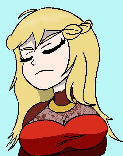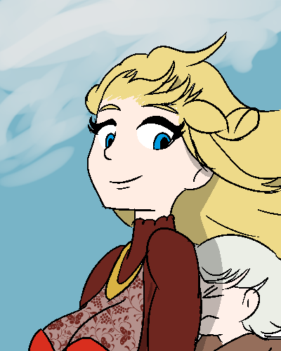 The moment we’re on the ground, the winds fall silent. There’s a soft crackle of electricity, a rush of air forms a vortex in front of us, then a whirlwind of blue coalesces into the form of a smirking woman. Pierre does his best to ignore it as he focuses on Dotti, who remains dutifully seated on the ground.