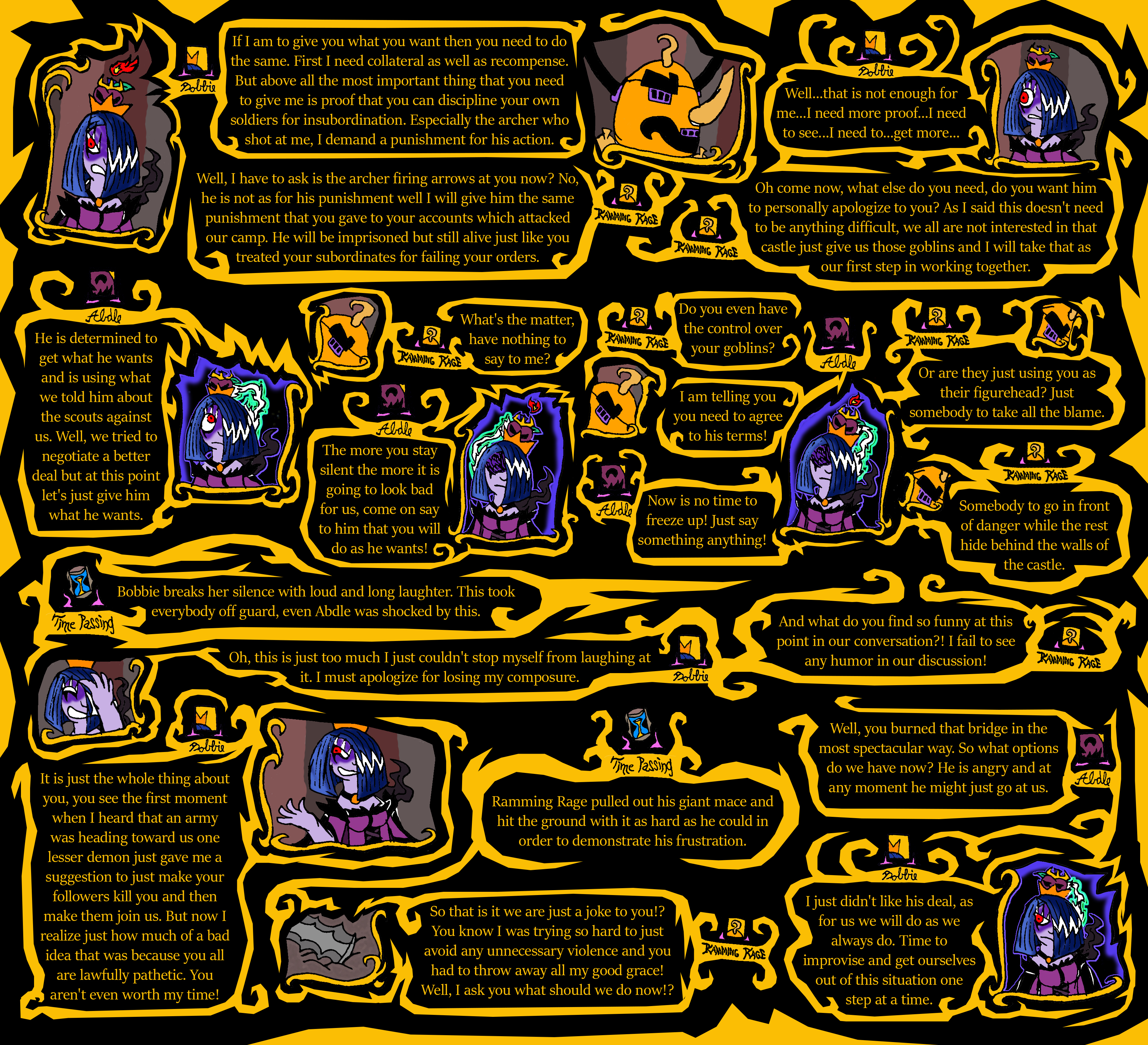 Try laughing and saying that while you were distracting him, your goblins should be now be finished performing their sacrificial ritual on the steed you killed, along with the other sacrifices you performed in the past. And with enough souls, you should now pretty much be able to wipe out his army with the aid of unseen powerful ghostly warriors, and as a generous leader, you'll spare their lives if he and his army doesn't leave now.