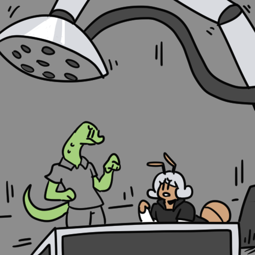 “Oh, hmm. Another good idea, we can test our plan here too.” Measuring her up next to the microscope, Anet’s about as small relative to the lab as Pent was when enlarged.