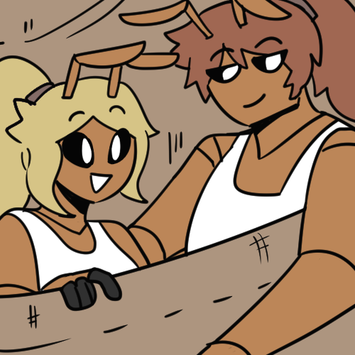 Anet takes the controller and orders the machine to shrink her. An arm rotates to face her and sprays a large blue cloud in an up and down pattern. For a moment, she’s still standing inside the cloud as it spreads to cover her legs, and then she appears to vanish as the cloud disperses. Of course, she’s not gone, she’s just standing at our feet, now the most miniscule ant to ever exist. She’s jumping and waving up at us, though we’re already looking right at her. I kneel down to get closer, trying not to speak too loud. “All good down there?”
