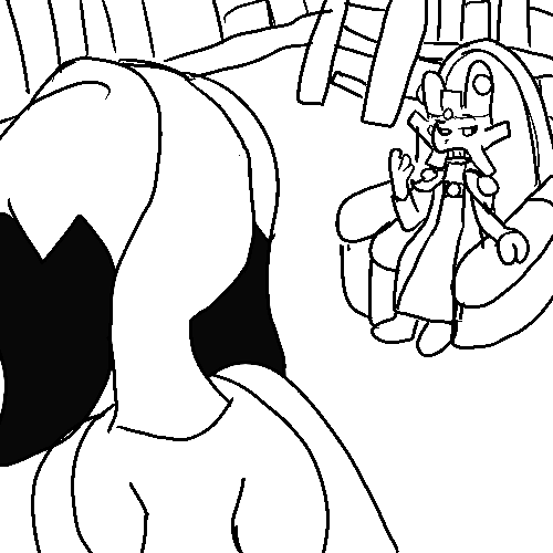 Posini ideally turns around to face the rest of the party. "She's no threat!" Posini chuckles. I'm absolutely flabbergasted by the 180-degree change in tone; what was he even talking about?