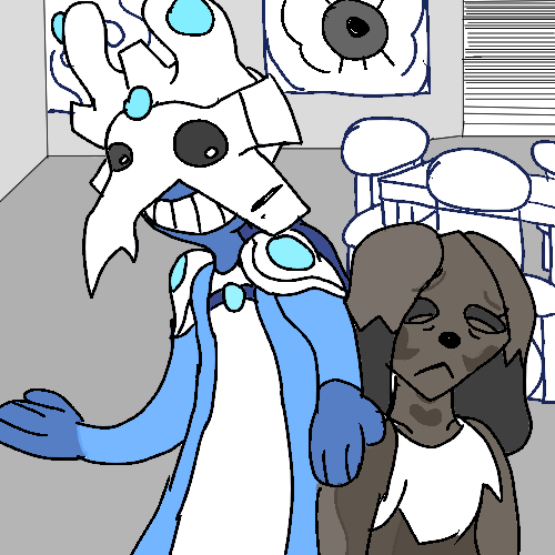 Alex scans him, scanning him for any malicious intent, but then inevitably stops and puts his attention back to Umbra; Posini looks at me. Attempting to muster a smile but instead giving a wide grin.