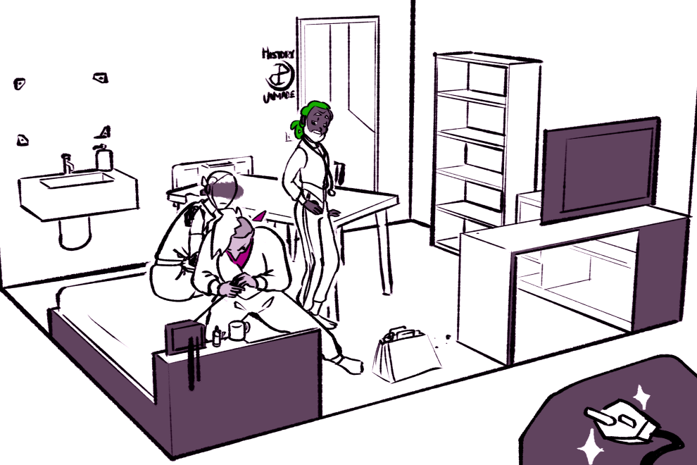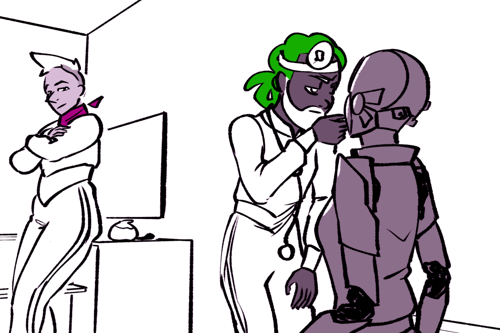 Hunger and thirst? But you have no mouth, what do you eat and drink? Do you need to recharge? There's some kind of panel at the head of the bed, it would make sense for there to be a recharging cable there.